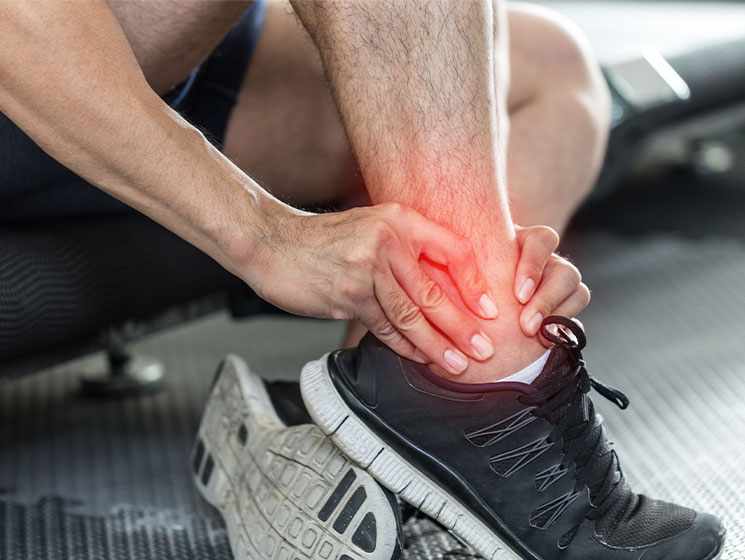 Common in sports that involve a lot of jumping (and landing) or stepping on another person’s foot and causing them to trip and twist their ankle. The result is the ligaments (strong elastic bands that stabilises the ankle) over-stretching or tearing, causing pain and swelling.